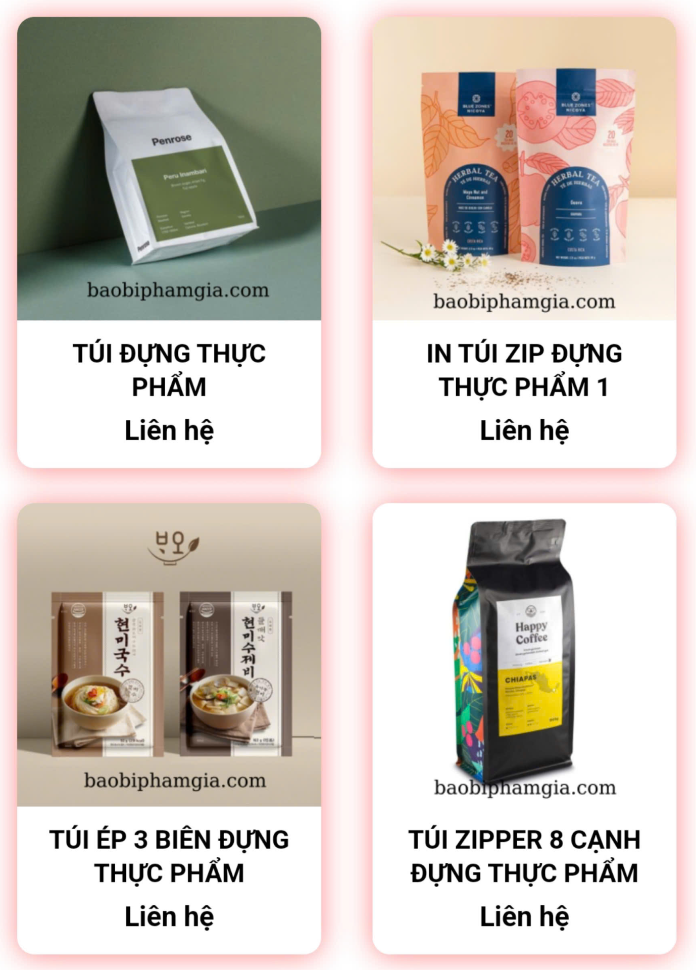 Túi đựng sản phẩm thực phẩm dạng nước, dạng sệt, dạng bột, dạng khô…