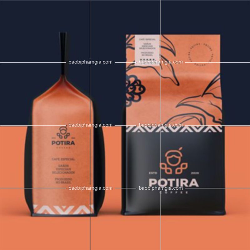 - Màng OPP, OPPMAT, PET: Là lớp màng ngoài cùng của bao bì cafe, chất liệu để in nội dung lên đó. Thêm vào đó lớp màng này có có khả năng chống ẩm, chống oxi hóa cùng khả năng giữ mùi tốt, độ bền cao, chịu được va đập, chịu xé tốt để không bị nhàu rách trong quá trình vận chuyển.