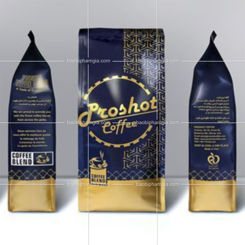 - Màng AI, MPET, MCPP: Là màng nhôm hoặc mạ nhôm là lớp màng ở giữa có vai trò gia tăng cơ, lý, hóa cho bao bì giúp tăng cường khả năng chống thấm, chống oxi hóa, chắn sáng và ngăn cản tác động từ các yếu tố môi trường bên ngoài ảnh hưởng đến chất lượng cafe.